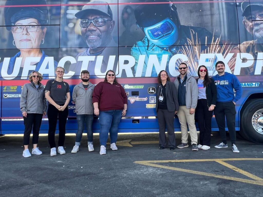 The Manufacturing Express received an eager welcome from students and faculty at McHenry County College (MCC) today in Crystal Lake, Illinois at the newly opened Foglia Center for Advanced Technology and Innovation (CATI). This state-of-the-art facility represents a significant leap forward in hands-on learning for aspiring manufacturing professionals. With cutting-edge programs in Manufacturing Essentials, Welding and Fabrication, Precision Machining, HVAC, Automation, Robotics, Mechatronics, and Engineering Technology, CATI equips students with the skills needed to succeed in today’s promising and competitive manufacturing landscape.